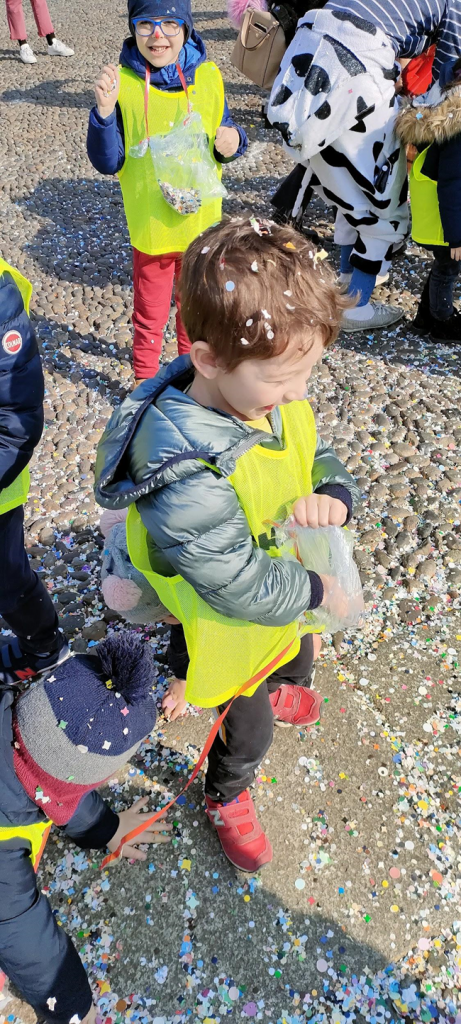 Che cos’è il Carnevale? Nel vocabolario Treccani viene definito come “tempo di spasso e di baldoria”. È un momento gioioso, di festa e divertimento. I bambini della scuola dell’infanzia hanno voluto vivere questo momento in allegria e in compagnia passeggiando per le strade di Lodi a ritmo di musica. Hanno voluto portare gioia e festa per le vie e nella piazza della Vittoria di Lodi, cantando, ballando, giocando con i coriandoli e regalando un sorriso alla gente che si è raccolta intorno a loro nella piazza. Gente di passaggio, nonni e genitori si sono fermati a godere dello spettacolo e sono stati “investiti” dalla gioia dei bambini e dai…coriandoli!