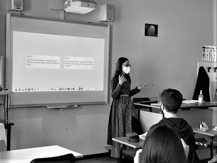 Ancora fresca di maturità e verso la fine della mia prima sessione alla facoltà di Lingue e Letterature Straniere dell’Università Cattolica del Sacro Cuore, piena di entusiasmo dopo aver dato il mio primo esame di letteratura tedesca, ho scritto alla mia professoressa del liceo per raccontarle com’era andata. Parlando di quello che avevo studiato e ciò che mi aveva colpita di più, lei mi ha fatto una proposta: “Vieni in quarta a fare una lezione con me”.