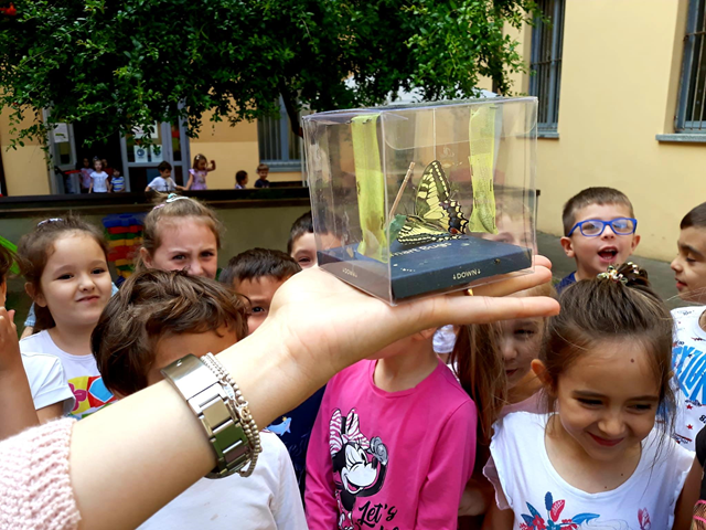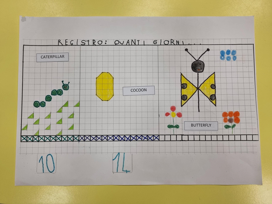 I bambini ogni giorno hanno osservato i piccoli animaletti nutrirsi e crescere registrando i dati raccolti attraverso la compilazione di una tabella temporale. Spiega la maestra : “Prima abbiamo osservato la crescita con bruchi che hanno iniziato a costruire il loro bozzolo. Poi l’attesa si è fatta carica di aspettativa fino a lasciarsi travolgere dallo stupore generale quando da uno dei bozzoli è uscita una meravigliosa farfalla macaone.