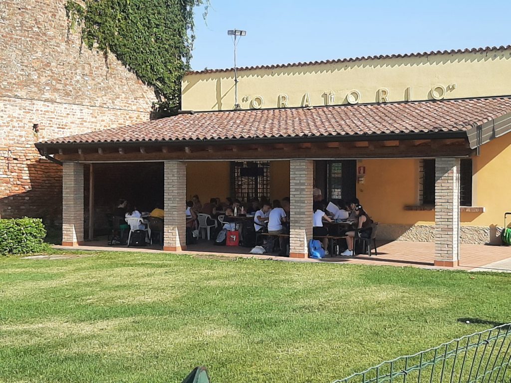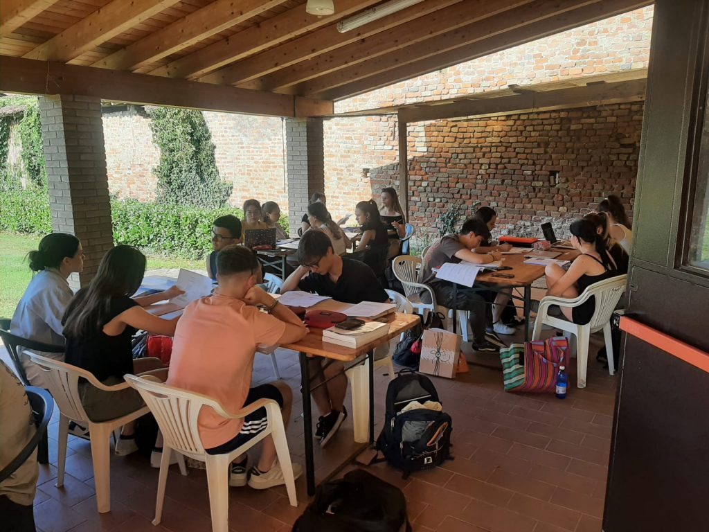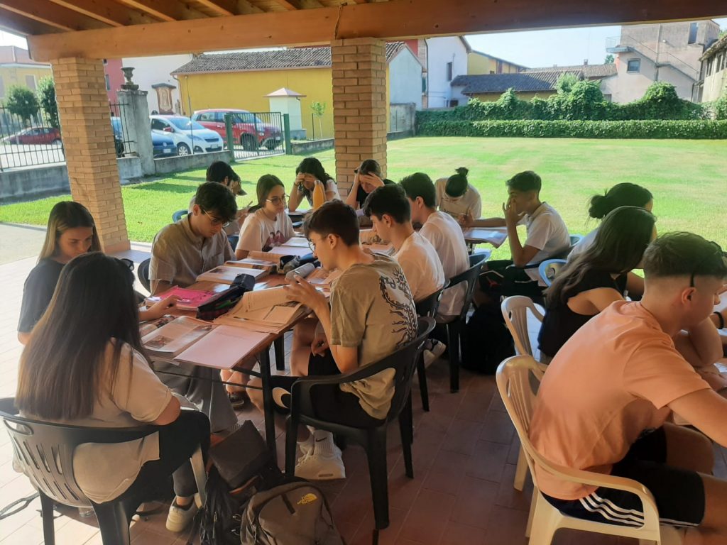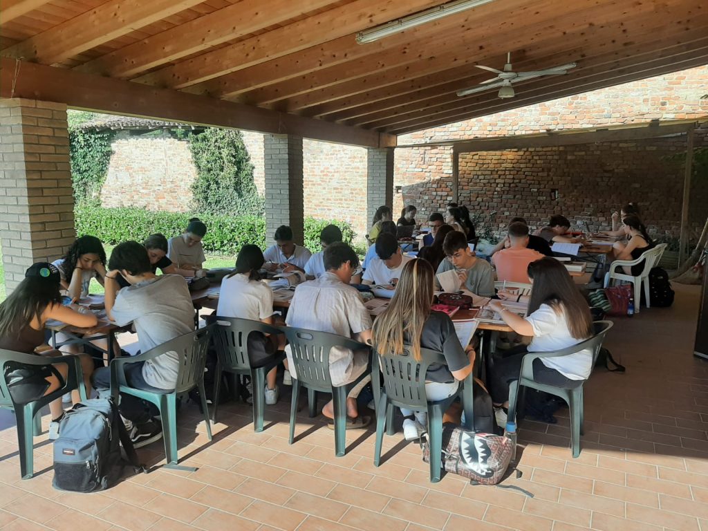 E quale modo migliore per esercitarsi in vista dell’esame, che trovarsi a studiare insieme? Le relazioni, infatti, prima che tra i contenuti, nascono tra gli individui: ecco perché non stupisce l’entusiastica adesione degli studenti alla proposta di trascorrere alcune giornate di studio condiviso. Nella bucolica cornice dell’oratorio di Torlino Vimercati – decisamente lontano da qualsiasi distrazione – per quattro giorni le ore di studio si sono alternate a pause corroboranti all’insegna delle bocce e della pallavolo. Sono arrivati, da parte di molti genitori e docenti, numerosi generi di conforto: i ghiaccioli e i gelati hanno sollevato dalla calura, pizze, biscotti e crostate hanno allietato i palati (c’è fin qualcuno che lamenta di non riuscire più a chiudere i blue jeans).