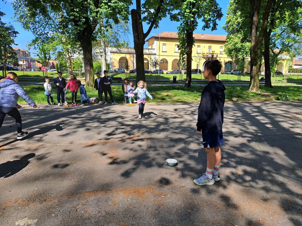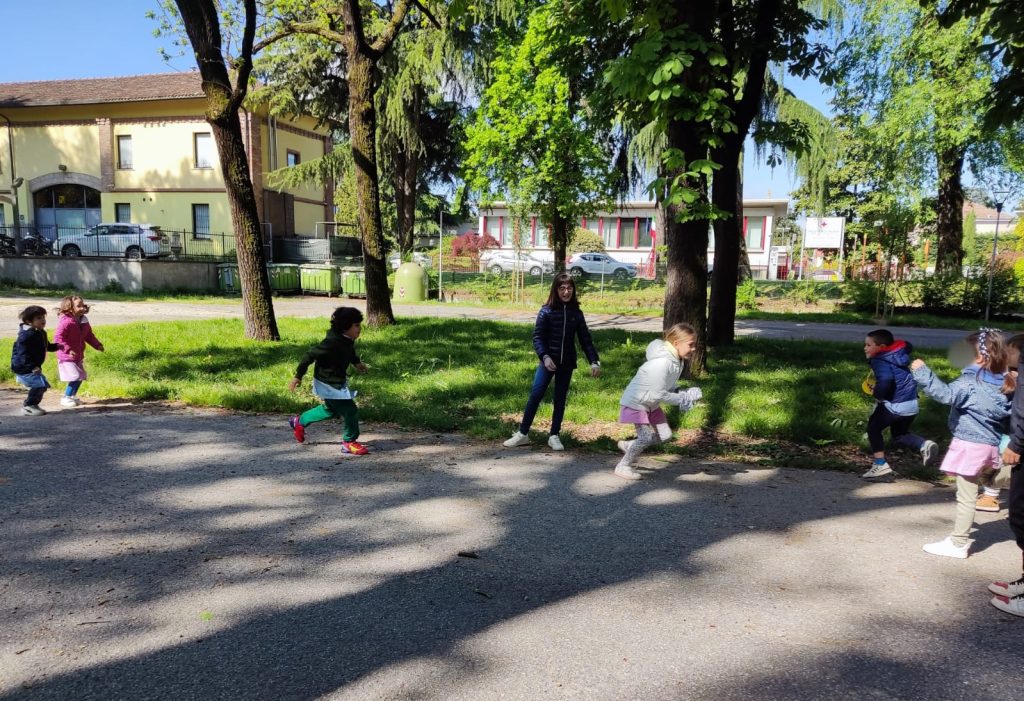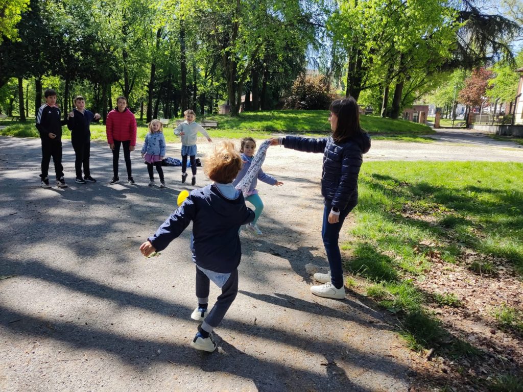 Da subito i piccoli hanno dato la mano ai grandi durante la passeggiata per recarsi al parco, parlando fra loro e poi si sono affidati con serenità ai compagni di quinta, coinvolgendosi in tutti i giochi proposti. Un bel gruppo entusiasta e partecipativo, allegro e attivo per un’esperienza davvero interessante, formativa e divertente. E qualcuno già diceva, appena ritornati a scuola: “Maestra, facciamo un’altra uscita così?!”