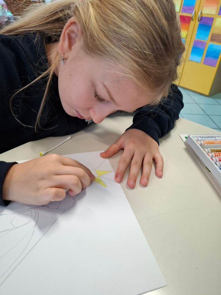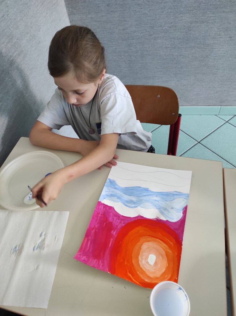 Nelle prime classi, i bambini vengono guidati alla scoperta del segno, della forma e del colore. Attraverso la manipolazione di materiali diversi e le prime esperienze pittoriche, imparano a riconoscere e utilizzare strumenti e linguaggi espressivi in modo spontaneo e personale. Con il passare degli anni, le esperienze si arricchiscono e si approfondiscono. Nelle classi successive vengono introdotte e affinate diverse tecniche pittoriche e di disegno, si sperimentano materiali nuovi e si amplia il repertorio espressivo. L’incontro con le opere d’arte, antiche e contemporanee, aiuta i bambini a sviluppare il senso estetico e a comprendere che l’arte è una forma di comunicazione universale, capace di raccontare storie.