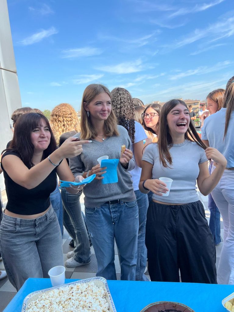 E poi tra giugno e luglio corsi di recupero delle lacune per alunni con debiti e riunioni dei docenti per la programmazione sia collegiale che per materie, cui si è aggiunta la giornata di formazione di tutti gli insegnanti della Fondazione Fides et Ratio. Così, fatte le prove dei debiti, si è organizzato l’inizio del nuovo anno scolastico previsto per il 4 settembre. La frase che segna il passo di questa nuova avventura è “Let this promise in me start”, richiamo a quella dello scorso anno “La vita è promessa”. Così giovedì 4 settembre, le classi seconda, terza e quarta hanno iniziato alle 8.30, mentre la prima è arrivata alle 9.15. Poi tutti in aula magna schierati ad applaudire i primini un po’ forse intimoriti e vergognosi ma con negli occhi lo stupore che ogni nuovo inizio porta con sé. Un video preparato da alcune docenti, ha svelato loro che la promessa che la frase dell’anno sottende chiede una mossa e che la posto in gioco è l’inaudita scoperta di sé. Dopo una simpatica presentazione dei docenti, tutti in terrazzo per l’aperitivo, occasione per conoscersi e scambiare due parole.