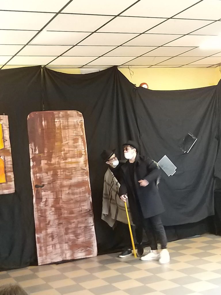 Anche l’eroe dunque risulta deformato, grottesco. Nell’opera il protagonista è un poeta cieco (ma in fondo è l’unico in grado di vedere la verità), che esprime la propria estetica mentre è ubriaco fradicio in piena notte per le strade di Madrid, accompagnato da Don Latino. L’idea è stata quella di rappresentare questa scena principale dell’opera in questione, sfruttando le capacità teatrali che, anche attraverso il laboratorio di teatro, si sono consolidate negli studenti nel corso degli anni.